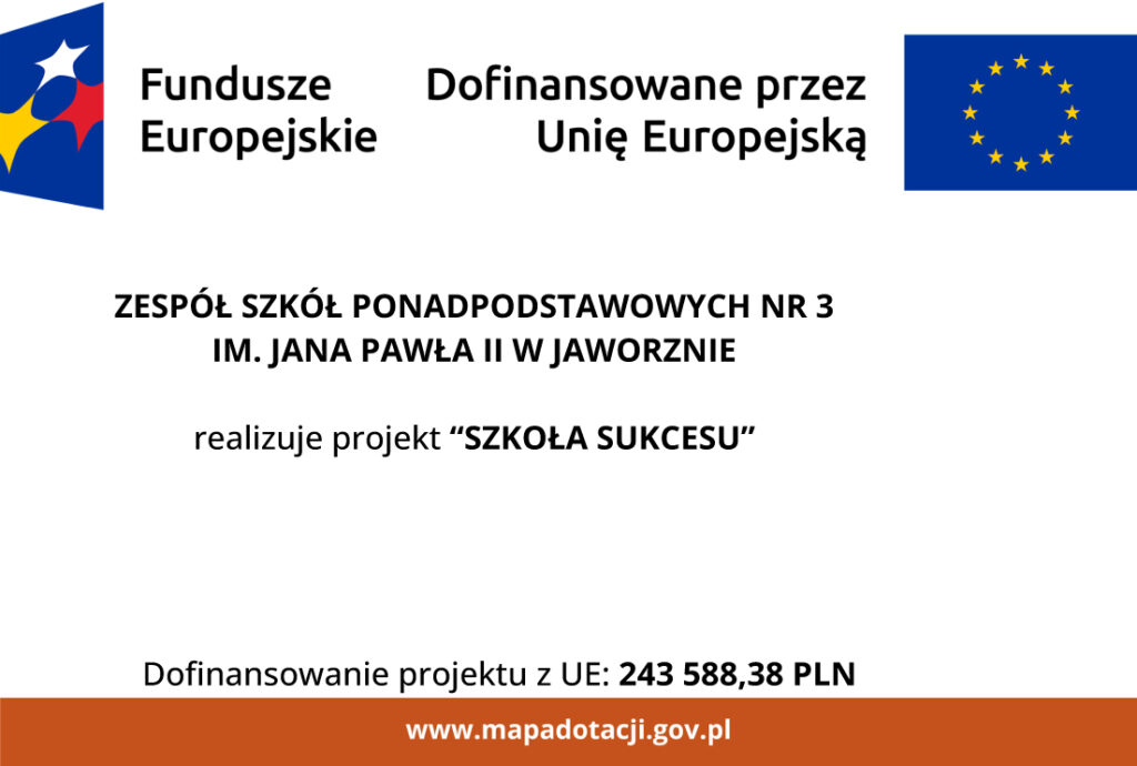 PROJEKT „SZKOŁA SUKCESU” REALIZOWANY W RAMACH PROGRAMU FUNDUSZE EUROPEJSKIE DLA ROZWOJU SPOŁECZNEGO 2021-2027 WSPÓŁFINANSOWANEGO Z EUROPEJSKIEGO FUNDUSZU SPOŁECZNEGO PLUS